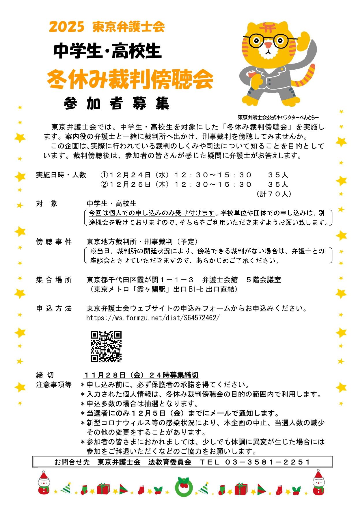 - 冬休み裁判傍聴会2025のお知らせ(12/24・25)