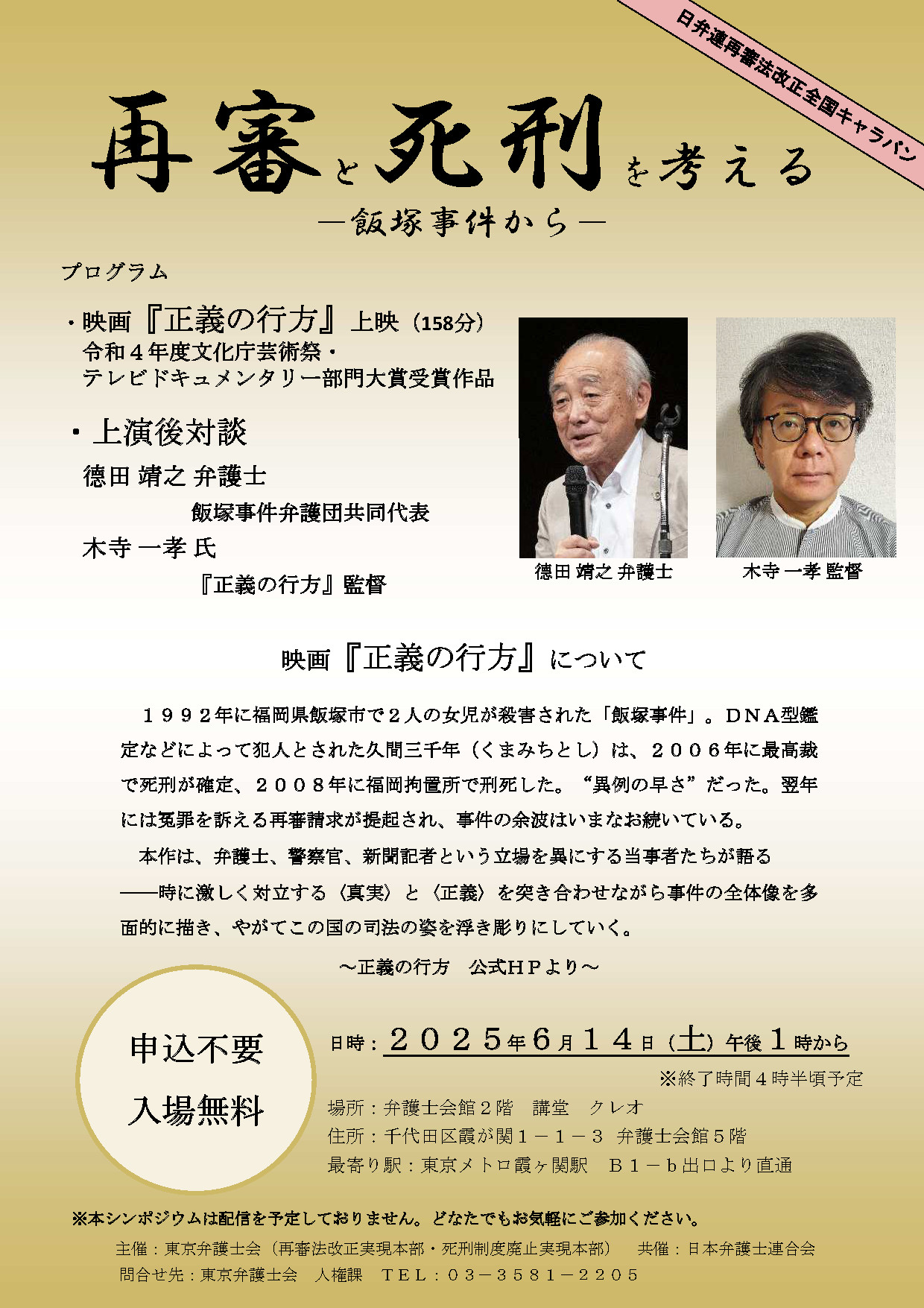 シンポジウム「再審と死刑を考える ―飯塚事件から― 」(6/14)